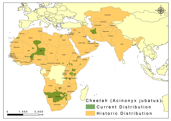 Zaradi vseh teh razlogov svetovna populacija gepardom strmo upada in so na seznamu ranljivih vrst. Danes jih najdemo le še na četrtini ozemlja, kjer so živeli včasih. Ocenjujejo, da jih je le še 7 do 10 tisoč.